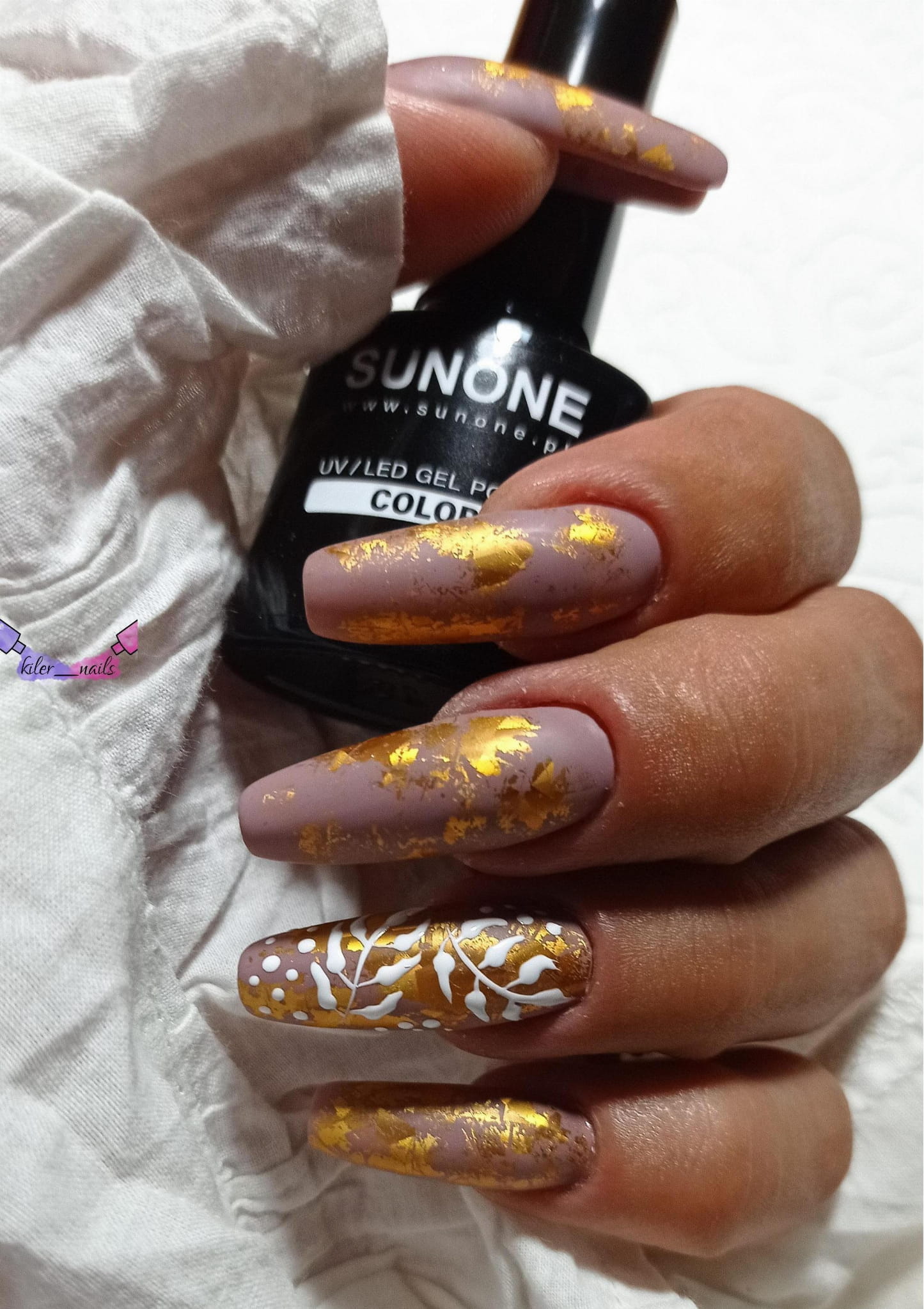 Ciesz się niezwykłym efektem złota na paznokciach.
