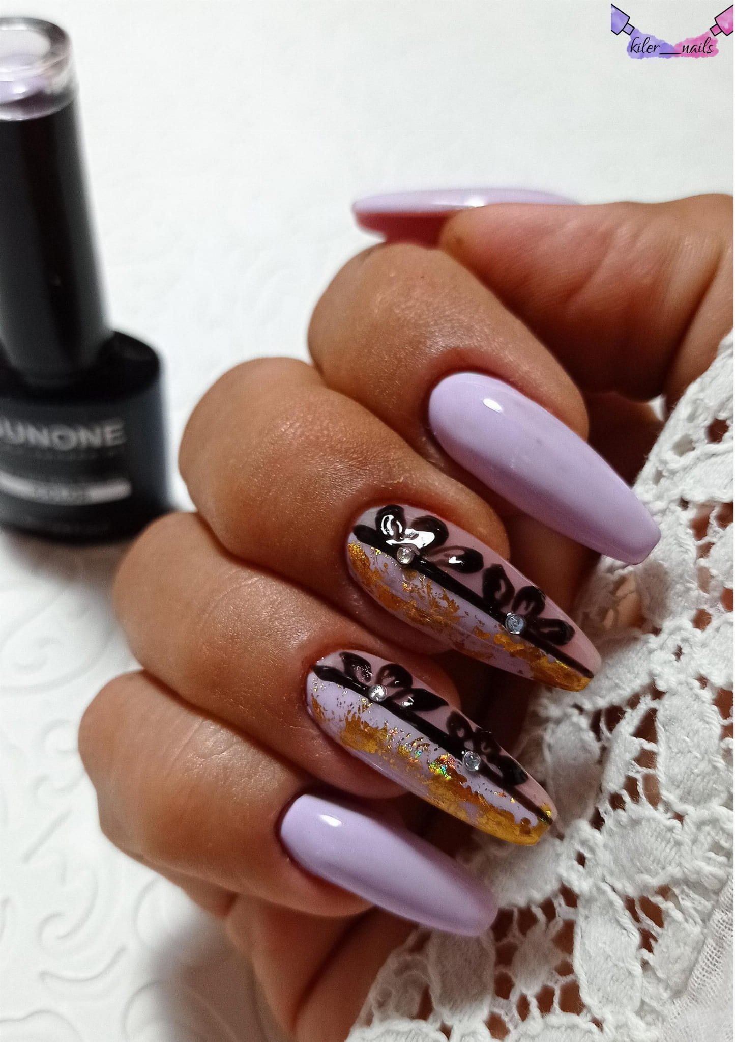 Folia jest niezwykle łatwa w aplikacji: wystarczy, że przykleisz ją do warstwy dyspersyjnej lakierów hybrydowych albo wtopisz w żel czy też akryl. Po aplikacji folii należy nałożyć top nawierzchniowy.
