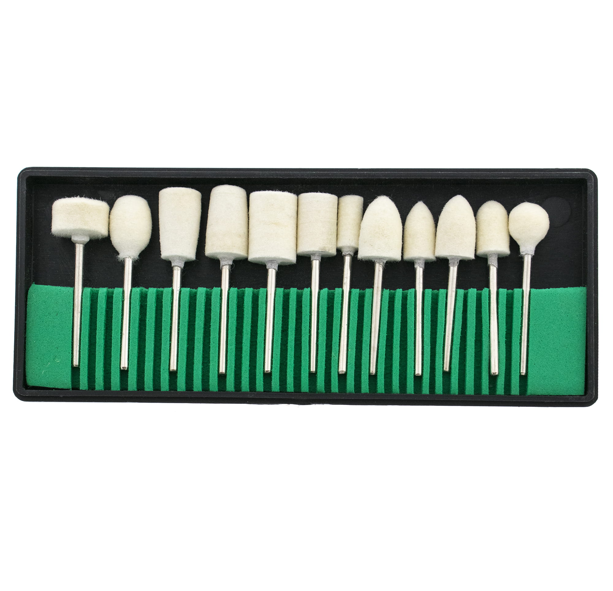 Zestaw 12 filcowych frezów, polerek służący do polerowania paznokci naturalnych, akrylu, żelu, tipsów. Nadają efekt szkła po spolerowaniu.