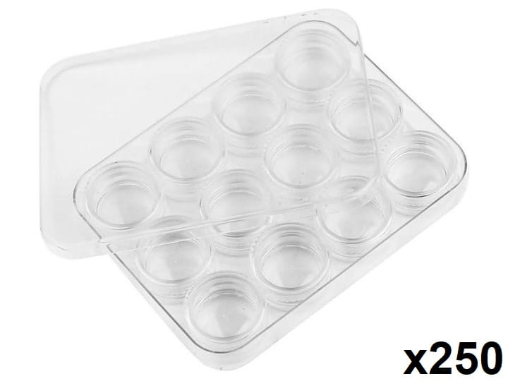 Wysokiej jakości przezroczyste pojemniczki na ozdoby, pomogą Ci zapanować nad swoimi skarbami bez obawy o wymieszanie i rozsypanie, komfortowo skorzystać z ozdób w każdej chwili. Pojemniczki bardzo dobrze się zakręcają i odkręcają, pasują do każdego rodzaju ozdób dostępnych obecnie na rynku: kółek, kwadratów, kwiatów, liści, rombów i trójkątów. Pomagają w organizacji pracy, oszczędzają czas. 12 sztuk pojemniczków w przezroczystej kasetce to wyjątkowo komfortowe rozwiązanie dla każdej stylistki paznokci. Wymiary pojemniczka 25 mm x 25 mm – pojemność 3G.
