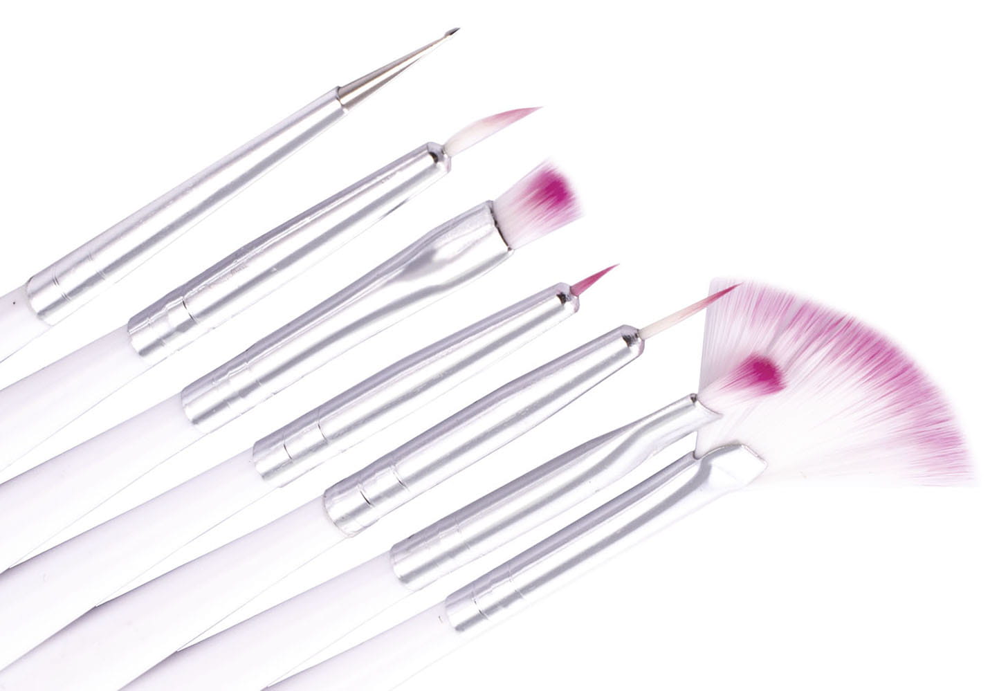 Zestaw profesjonalnych pędzelków do stylizacji paznokci. Pędzelki charakteryzuje bardzo wysoka jakość i wytrzymałość. Używane są przede wszystkim w profesjonalnych salonach manicure.
